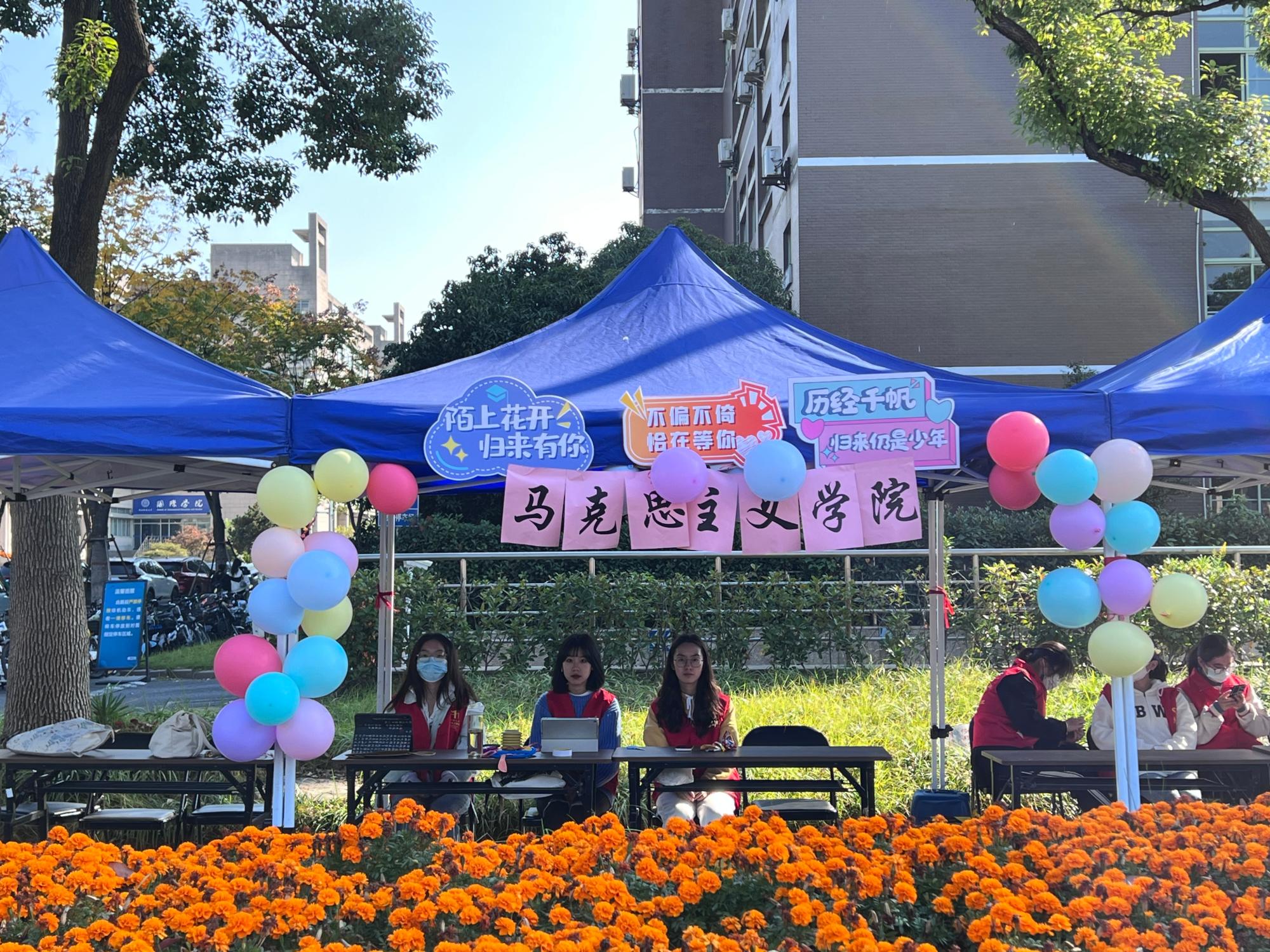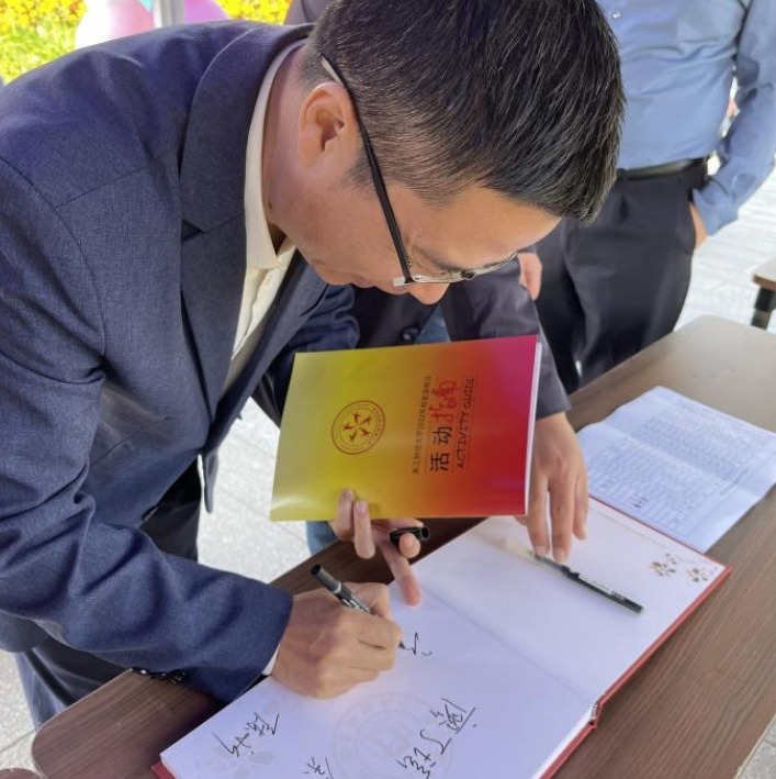 的摊位上签名留念并领取了日本无码av精心准备的画册和纪念品,校友们都为马院在一年年中取得的辉煌成就感到十分骄傲,为日本无码av得到的长足发展感到由衷的喜悦。签到完毕后校友们在志愿者的带领下去往普华大剧院参加2022年秩年返校纪念大会暨学业成礼仪式。