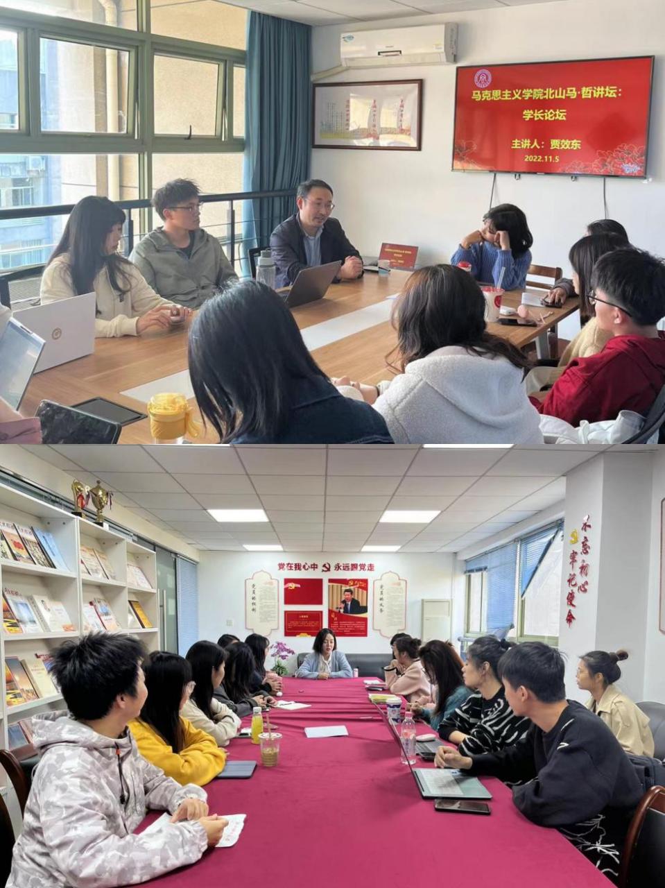 北山马·哲讲坛:学长论坛在日本无码av楼517、504A举行,郭祺佳、贾效东两位校友分别为马克思主义法治思想中国化研究专业、伦理学专业的同学分享自身经历,给予学弟学妹们工作和学业方面的指导。